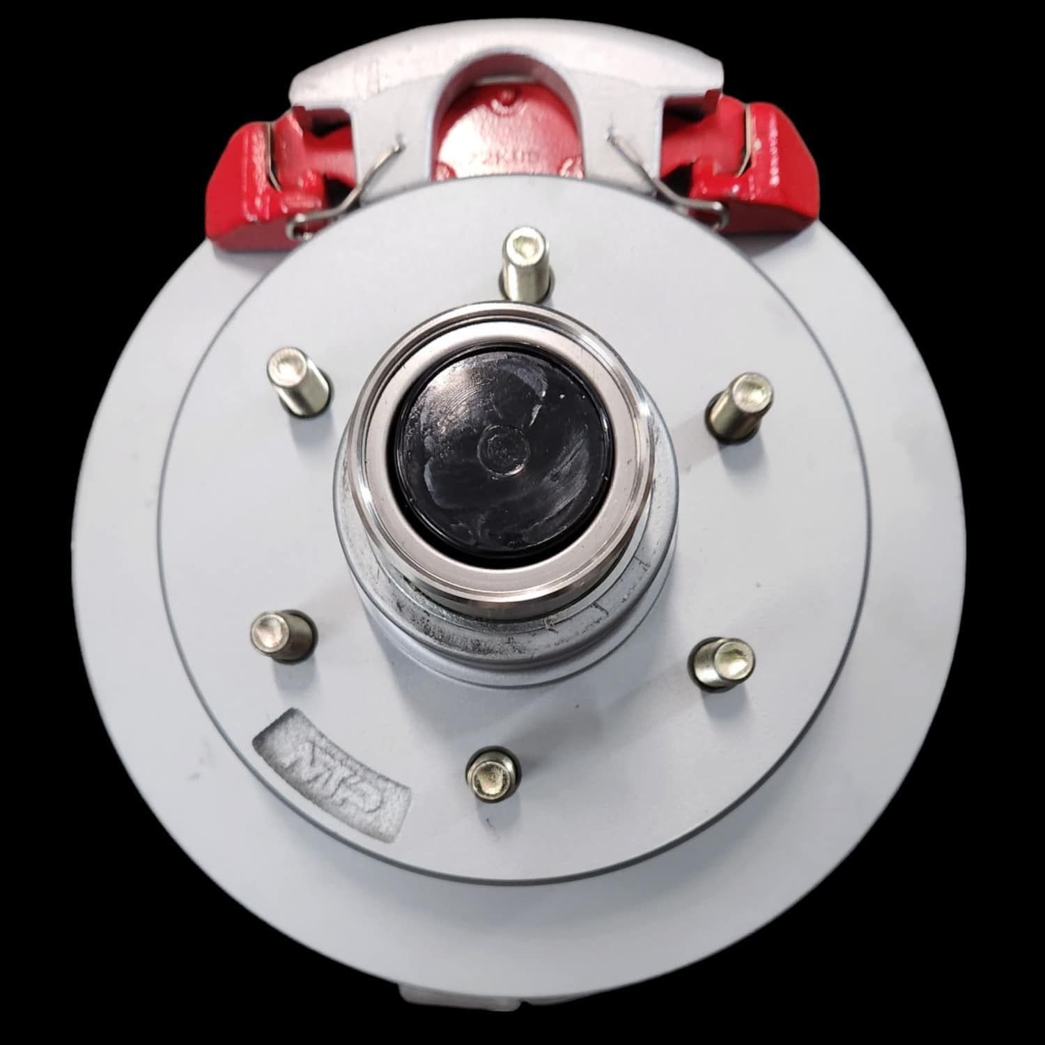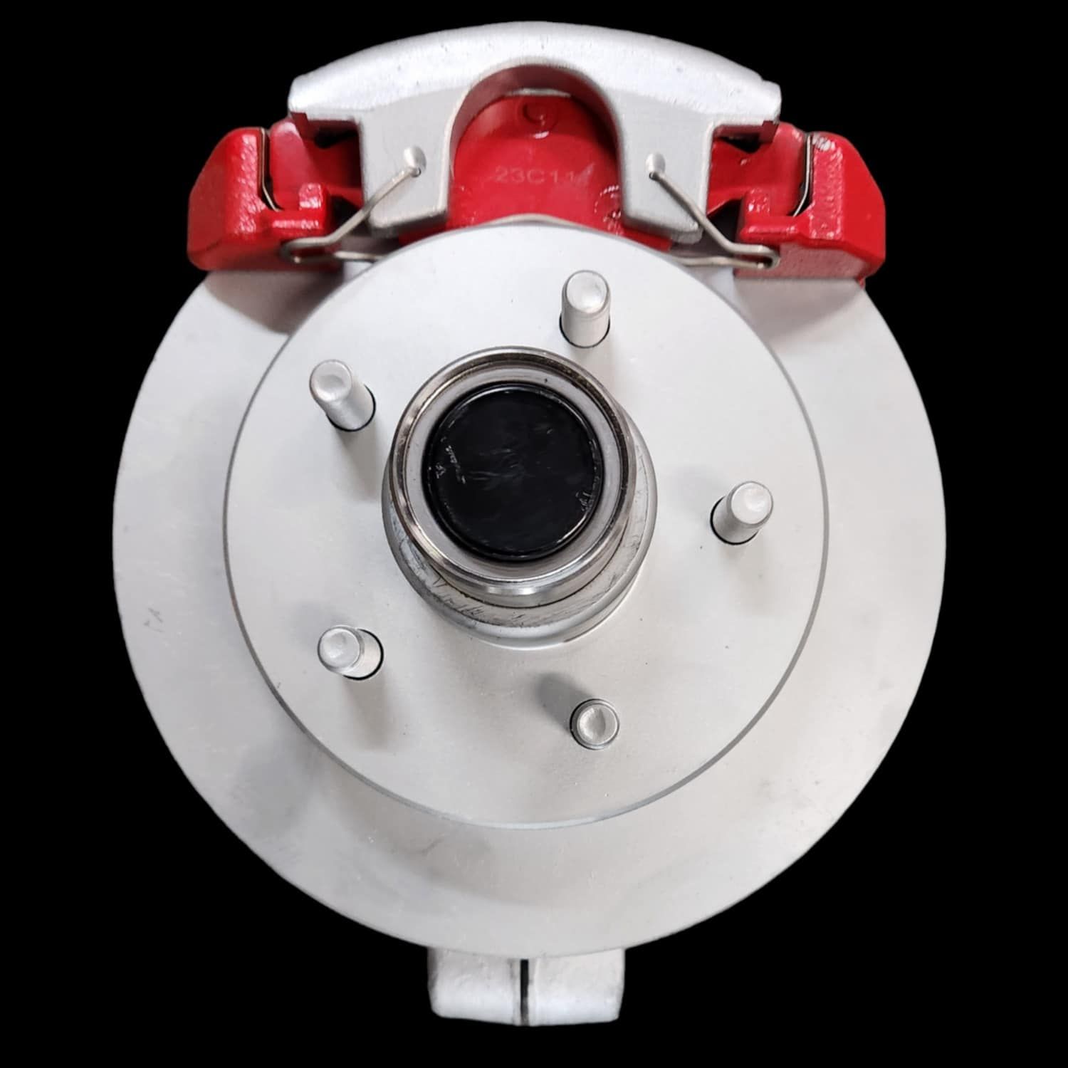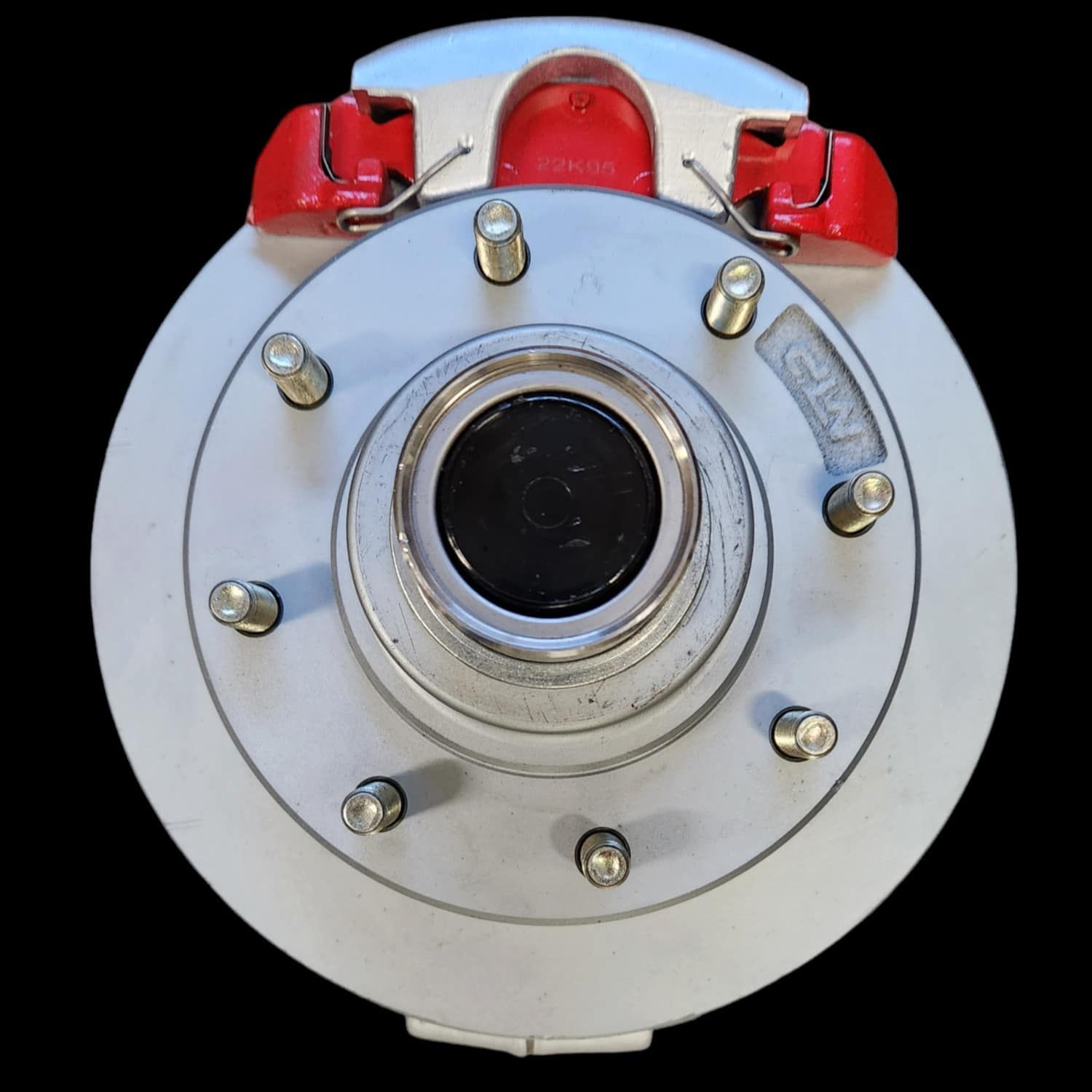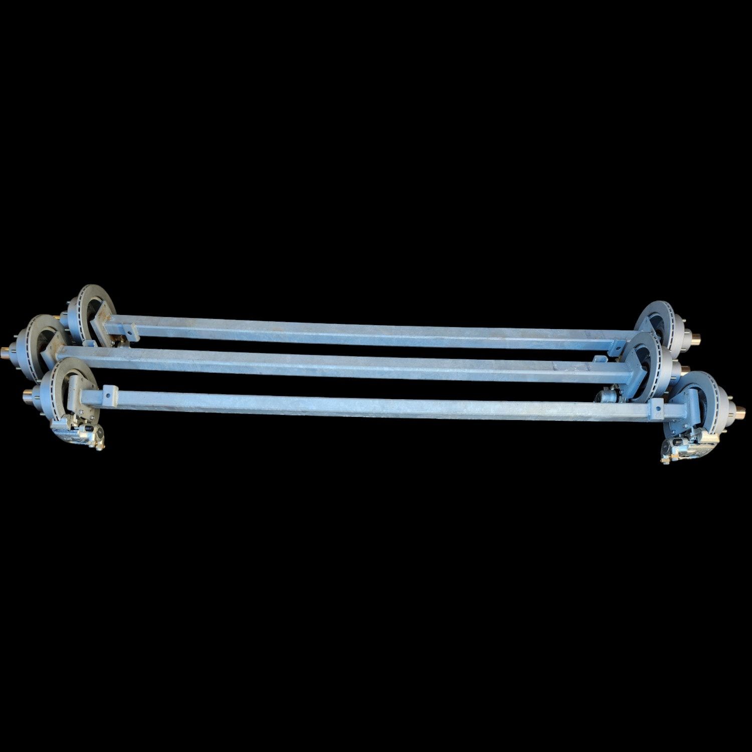 Galvanized straight spring axle with disc brakes. Hub face, 94 1/4''